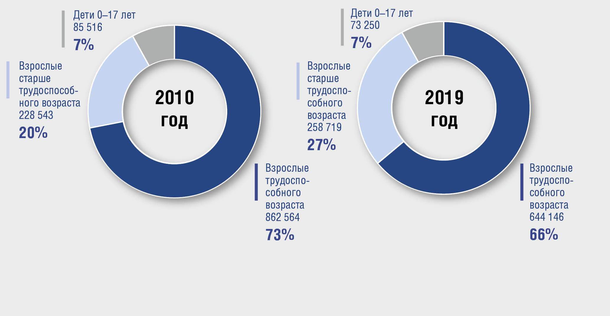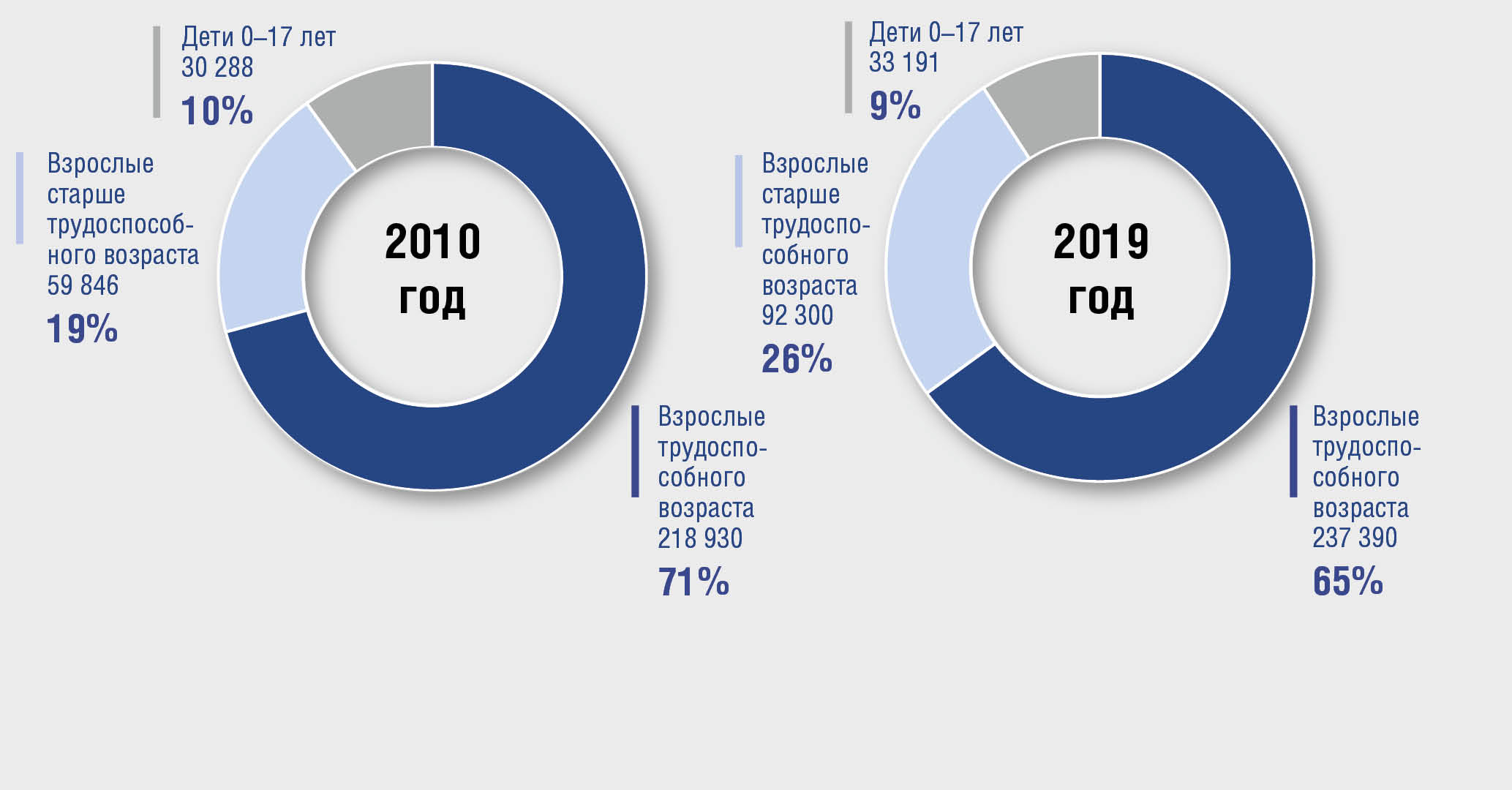 Увеличение числа и доли регистрируемых случаев псориаза среди населения старше трудоспособного возраста вызвано как ростом собственно распространенности и заболеваемости псориазом в этой группе населения, так и увеличением численности и доли населения этого возраста в процессе демографического старения. И если в 2010 г. каждый пятый пациент с псориазом был в возрасте старше трудоспособного, то в 2019 г. это уже каждый четвертый пациент.
