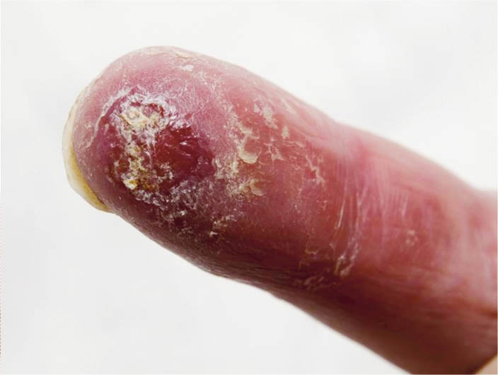 Fig. 3. Erosive and ulcerative skin defect of the distal phalanx at the stage of epithelization