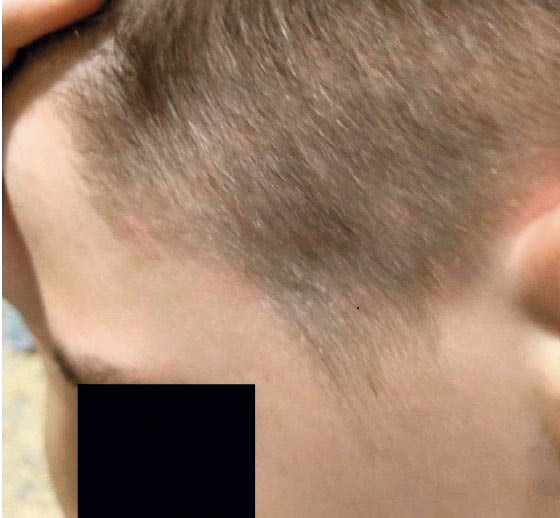 Кожа лица преимущественно поражается в области лба, переносицы, носогубных складок, боковых поверхностей носа, заушной области и чаще сочетается с поражением волосистой части головы. Клиническая картина представлена шелушением, гиперемией и небольшой инфильтрацией с образованием эритематозных очагов округлой или кольцевидной формы [1, 20]. Шелушению часто сопутствует зуд, при этом избыточной выработки кожного сала может не наблюдаться [21]. С переходом воспалительного процесса на волосистую часть головы высыпания характеризуются большими по площади очагами эритемы, инфильтрацией и шелушением, возможно образование корок, мокнутия [7].