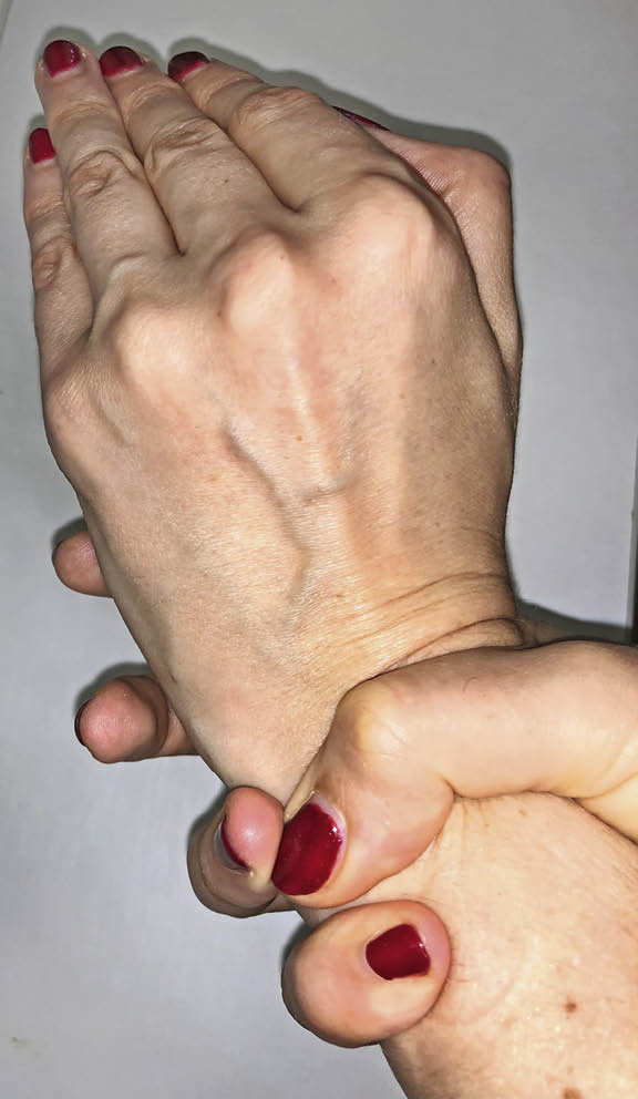 3. Fig. 2. Wrist-test (with the first and fifth finger): a grip with an overlap of more than half of the phalanx