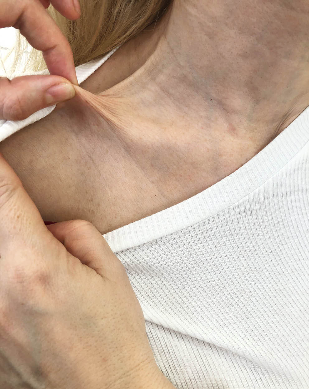 4. Fig. 3. Skin extensibility test: the formation of a fold in the area of the lateral edge of the clavicle about 3 cm