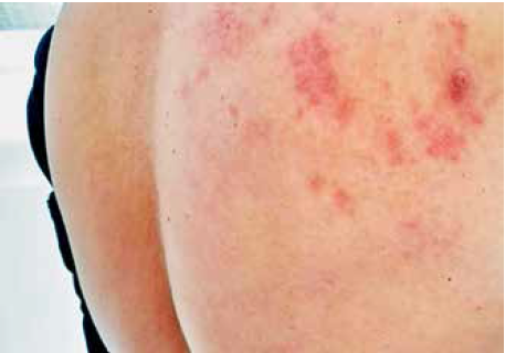 Fig. 1. Typical Herpes Zoster rash appeared at the distribution of T6 dermatome