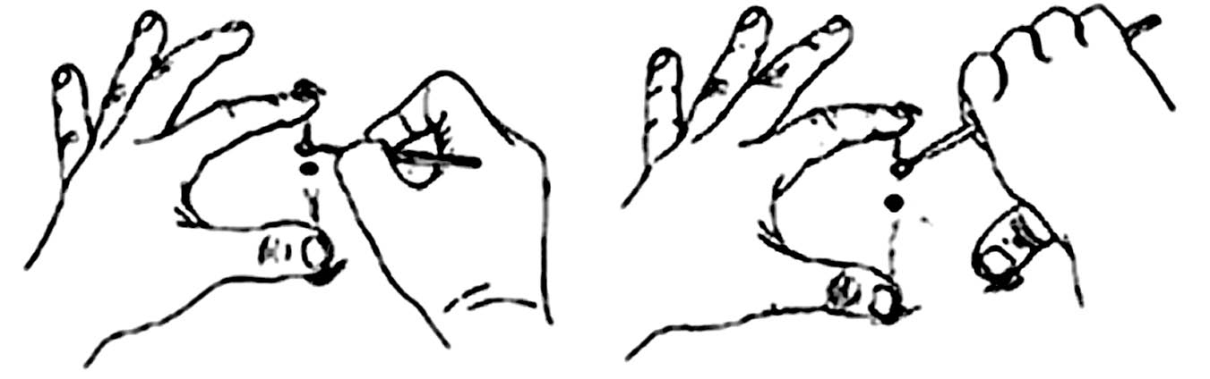 При выскабливании можно использовать две основные методики [30]. В технике «пера» (рис. 3) кюретку держат как карандаш в доминирующей руке, а поражение фиксируют недоминирующей рукой. В технике «картофелечистки» кюретка удерживается в дистальном межфаланговом суставе указательного, среднего пальца, безымянного пальца и мизинца, большой палец используется как опора. Важно, чтобы обрабатываемая область была надежно закреплена. Кюретаж выполняется энергично, пока вся опухоль не будет удалена и не будет наблюдаться плотная дерма с точечным кровотечением.