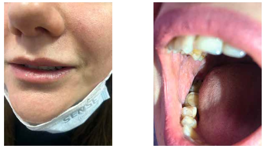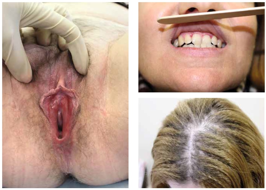 Рис. 6. Сочетание вульво-вагинально-гингивального синдрома и плоского фолликулярного лишая / Fig. 6. Combination of vulvo-vagino-gingival syndrome and lichen planopillaris