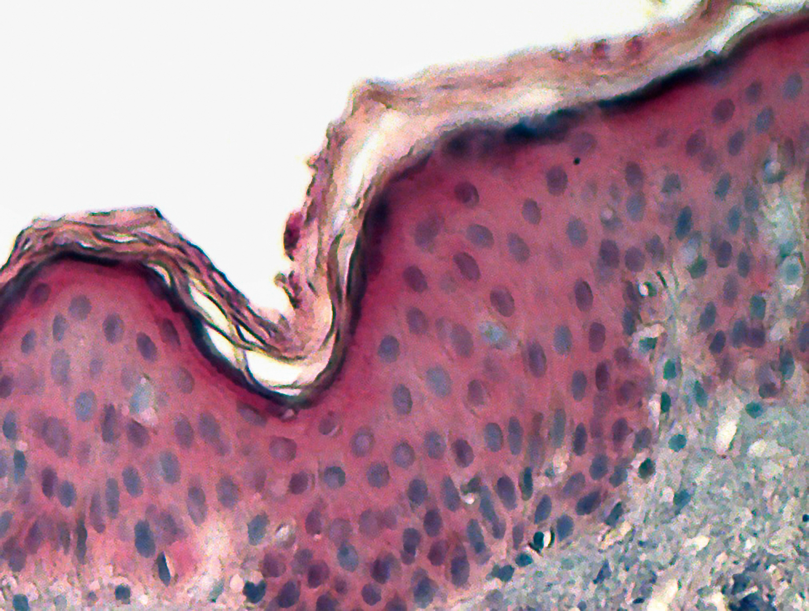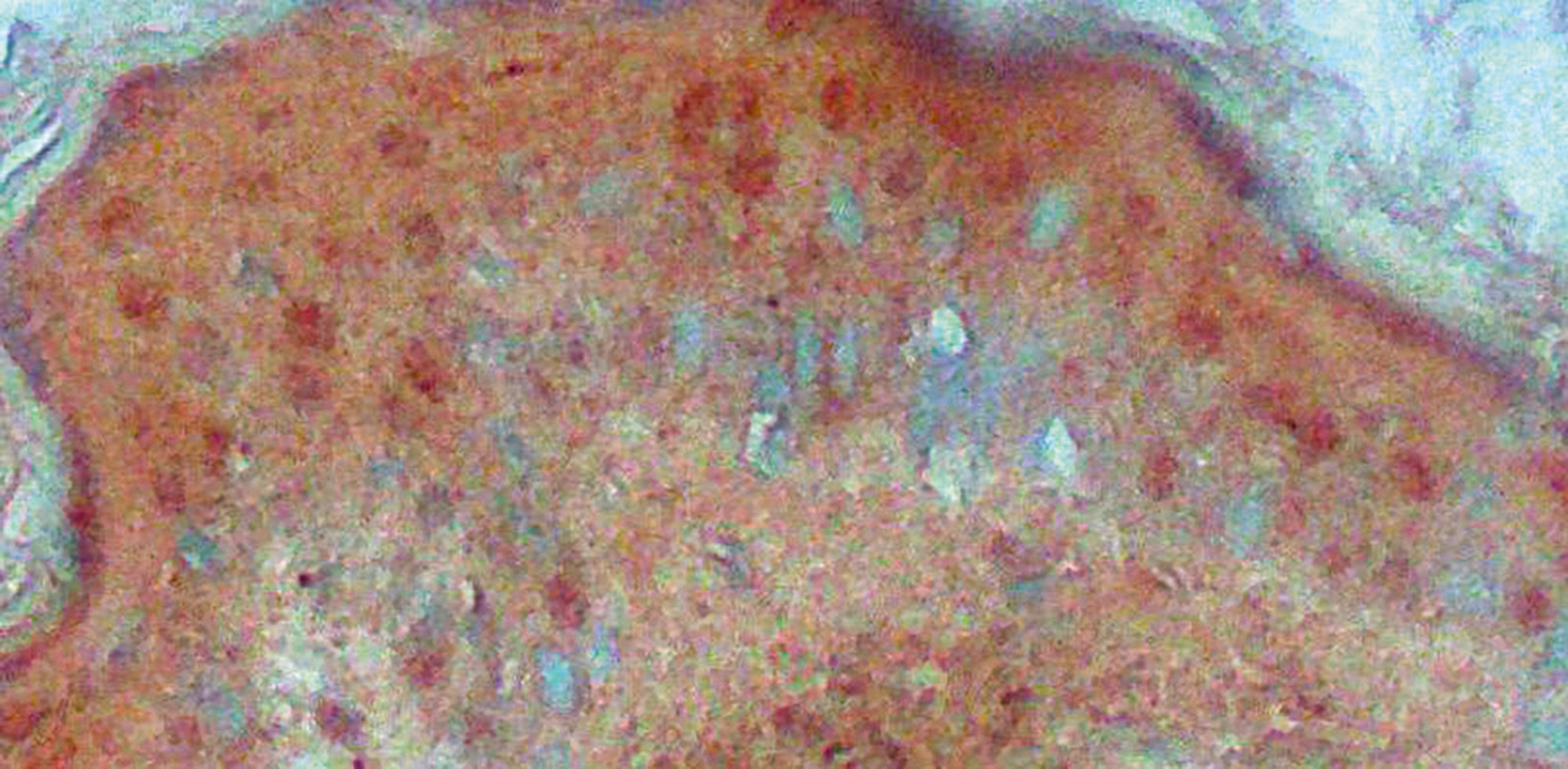 Рис. 2. Экспрессия TSPO в нормальном эпидермисе, ×100