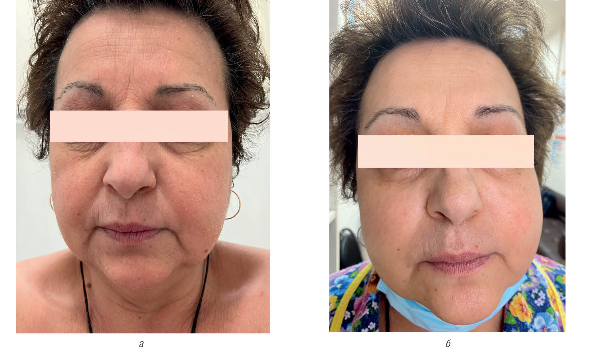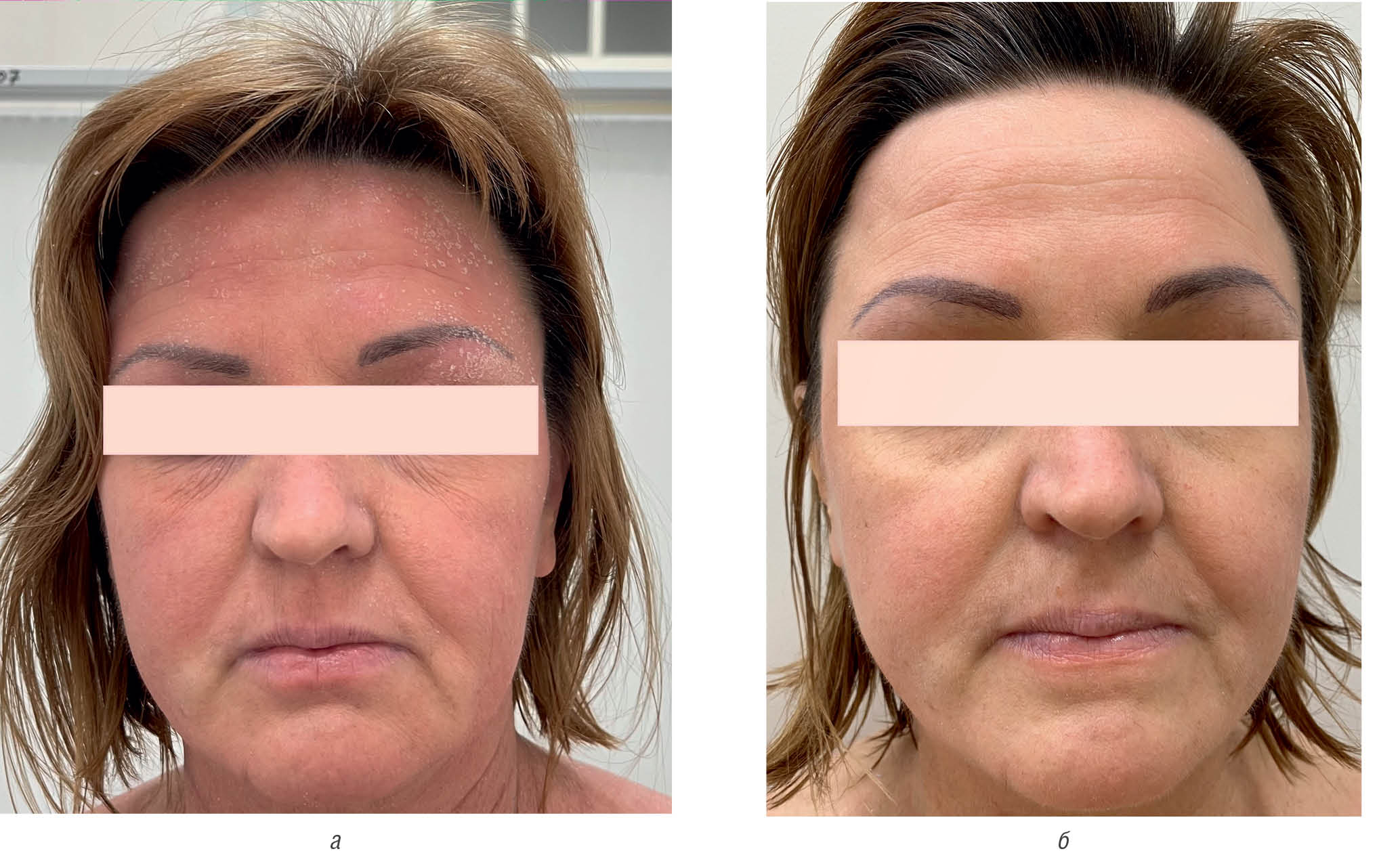 Fig. 19. Antera 3D. Patient F., moderately severe atopic dermatitis before and after “Admera”, reduction of skin xerosis (а–б)