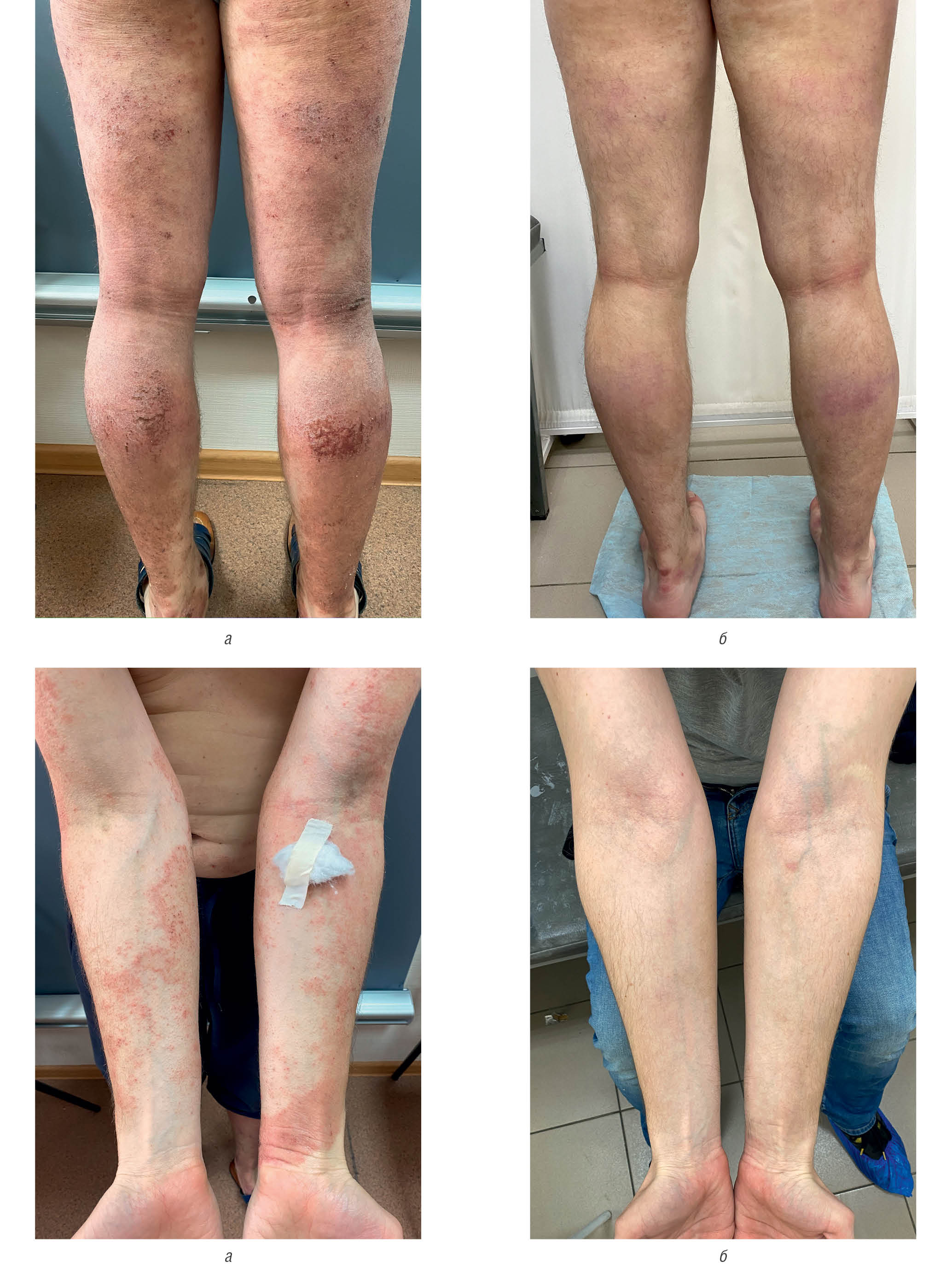 Fig. 22. Patient M., 60 years old. Severe atopic dermatitis before treatment (a) and after application of “Admera” emollient (б)