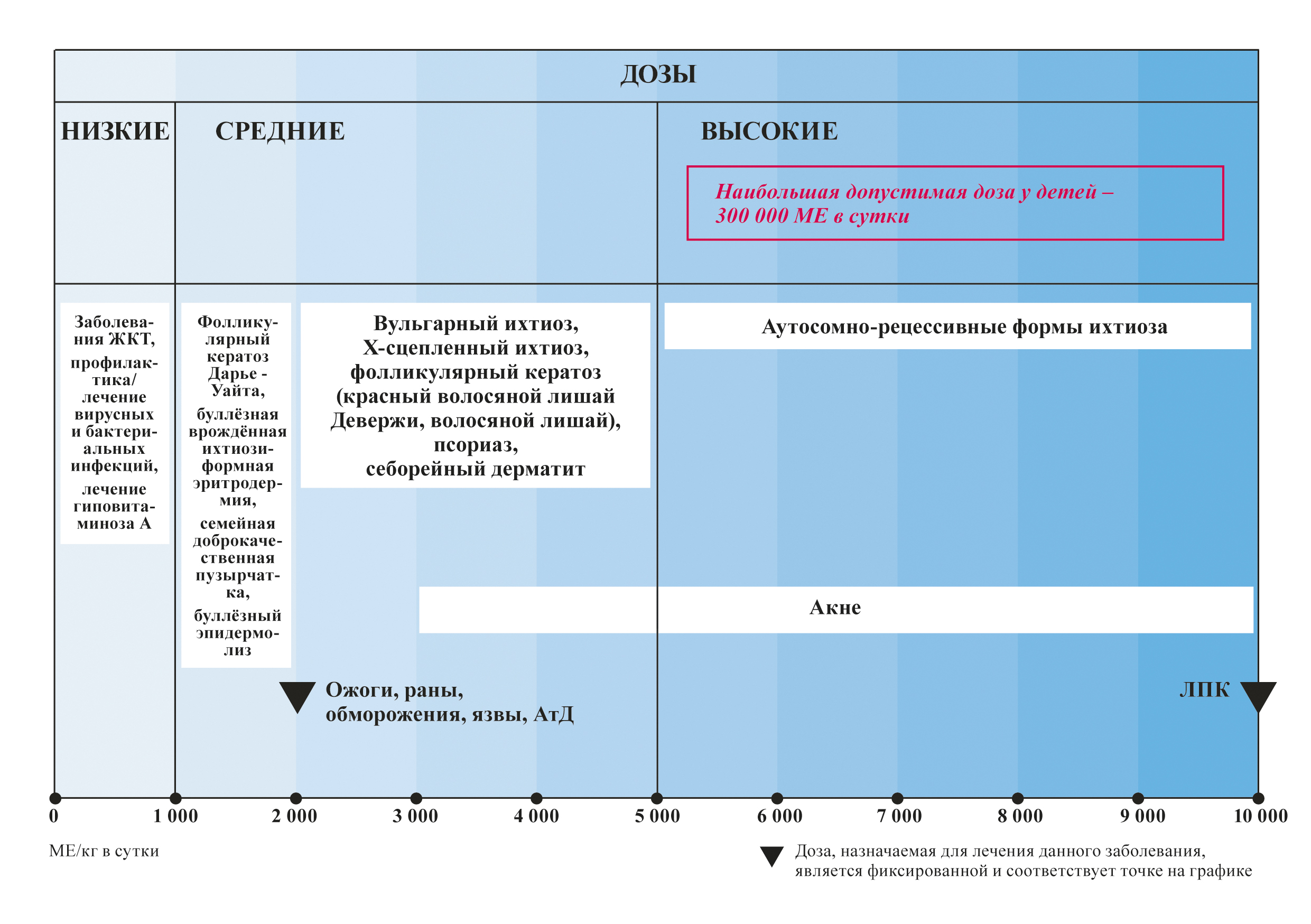 Таблица. Дозозависимое действие ретинола пальмитата [1, 12, 17, 38]