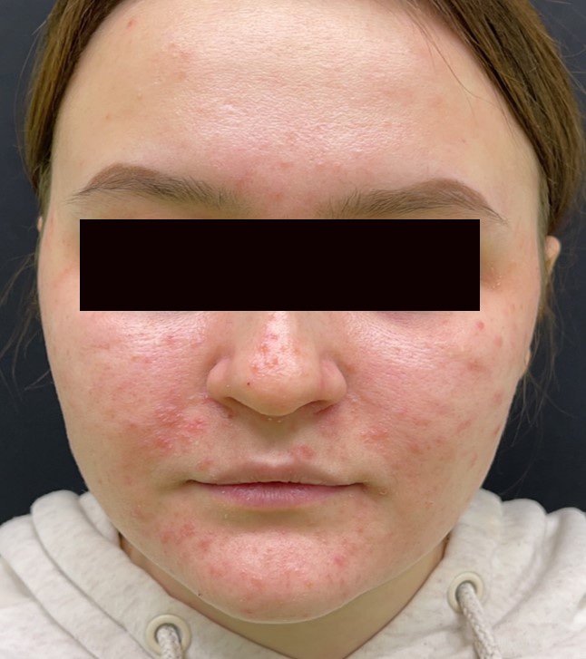 Пациентке назначен изотретиноин 0,5 мг/кг массы тела на 2 месяца, наружно — крем Скин-кап 0,2% дважды в день курсом 6 недель.