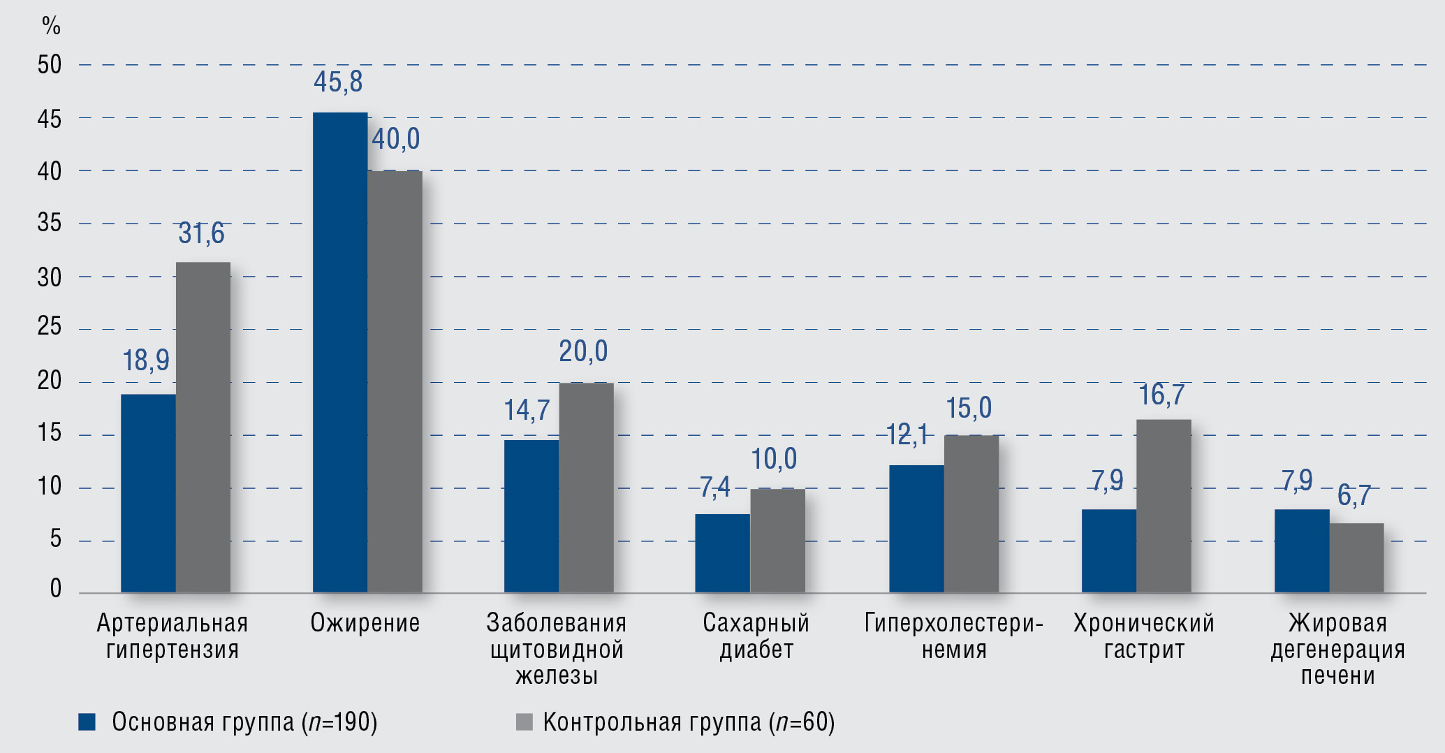 Рис. 3. Сопутствующая патология у больных псориазом и псориатическим артритом (n = 250), %