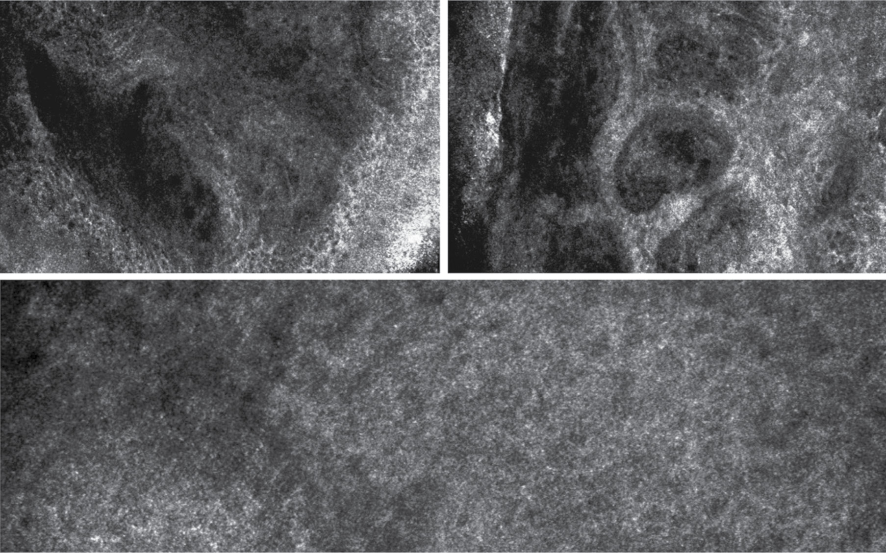 Fig. 2. Confocal microscopy of the lesion before treatment (top row), 1 month after treatment (bottom photo)