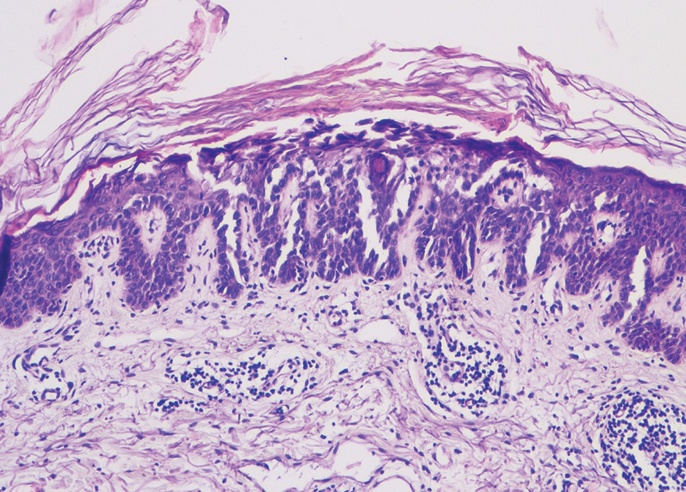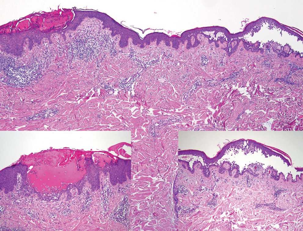 Лихеноидный гистологический вариант может быть представлен участками вакуольной дегенерации базальных кератиноцитов, небольшими лимфоцитарными лихеноидными инфильтратами в зоне дермоэпидермального сочленения, единичными дискератотическими клетками и едва различимым акантолизом.