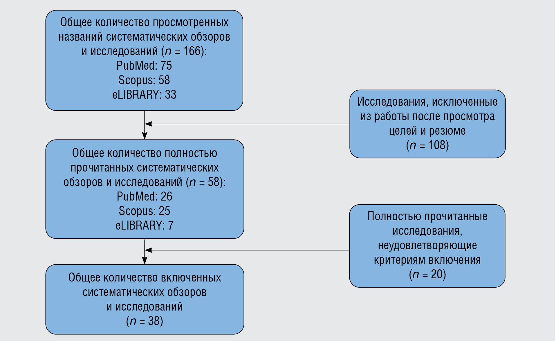 Рис. 1. Этапы и критерии отбора исследований, систематических обзоров и клинических случаев