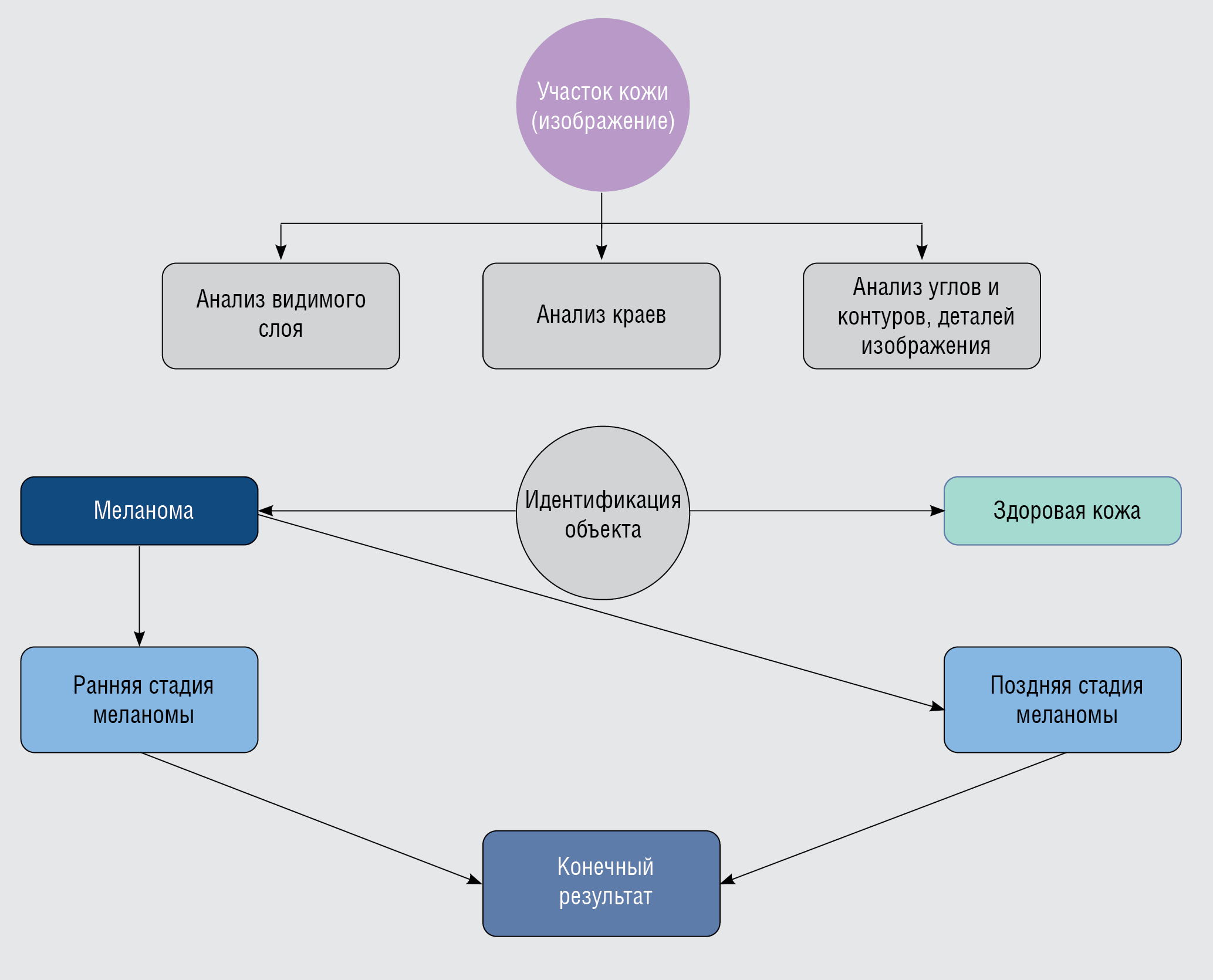 На сегодняшний день меланома стоит в ряду самых опасных и быстро метастазирующих форм злокачественных новообразований кожи, оставляя мало шансов на успешное лечение на поздних стадиях. Однако развитие компьютерной диагностики привело к созданию систем, которые позволяют выявлять и классифицировать кожные заболевания с точностью, сопоставимой, а в некоторых случаях даже превосходящей человеческие возможности [1, 3, 4]. В одном из исследований онлайн-версия CDSS Isabel («Изабель») при анализе данных 50 пациентов поставила верный диагноз в 96% случаев. Этот результат превзошел человеческий, поскольку врачи правильно диагностировали патологии в среднем у 95% амбулаторных пациентов [5]. В данной работе проанализированы различные алгоритмы для первичной диагностики меланомы на основе нейронных сетей. Большинство из них достигли высокой точности в определении меланомы на дерматоскопических изображениях, что позволяет надеяться на увеличение числа выявленных ранних форм заболеваний при профилактических осмотрах. Подобные инструменты также могут стать дополнительным источником информации для врачей, способствуя более точной диагностике. Исследование ориентировано на создание системы, способной поддерживать медицинских специалистов в процессе диагностики и принятия решений, особенно при определении злокачественных новообразований, включая меланому. Таким образом, интеграция ИИ в клиническую практику позволит добиться более эффективной диагностики (на ранней стадии), а значит, и улучшения качества оказания медицинской помощи в целом [6–8].
