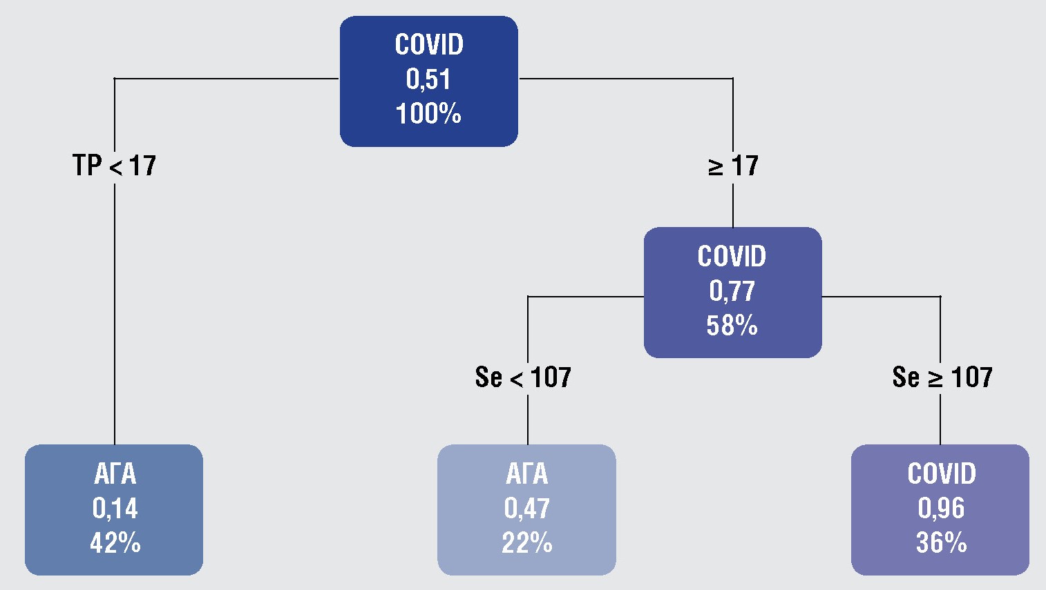 Рис. 2. Информативные показатели, выявленные с помощью алгоритма CART и позволяющие классифицировать алопецию на андрогенную или постковидную