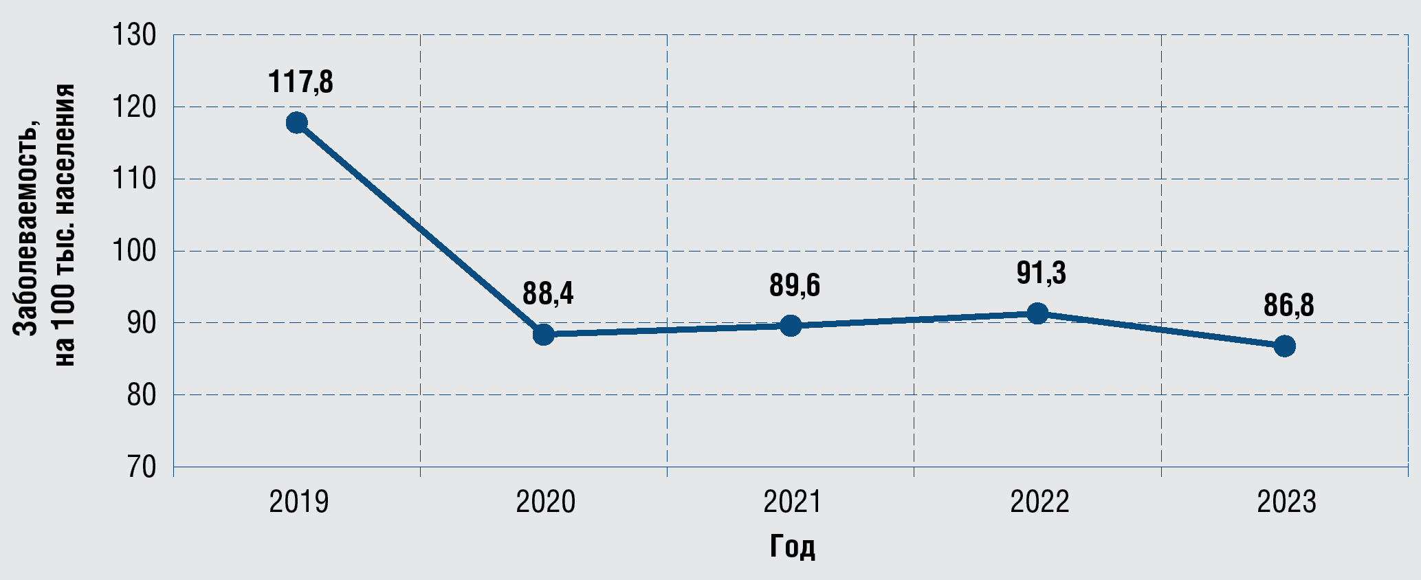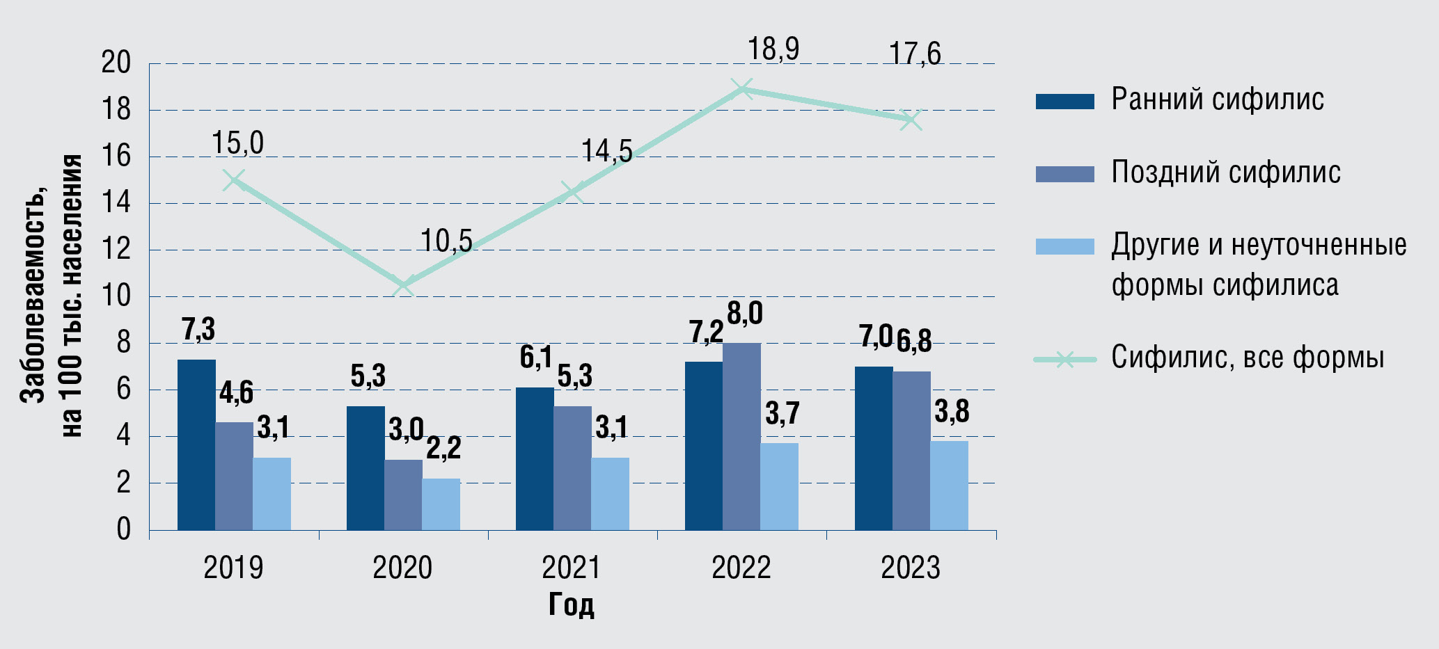 Заболеваемость сифилисом в Российской Федерации в 2019–2023 гг.
