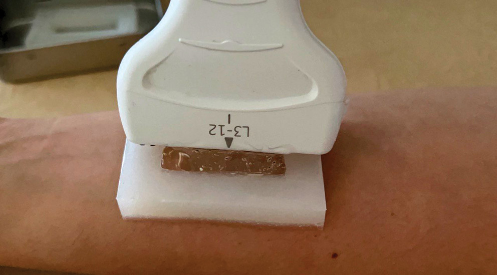 Наиболее важным ограничением применения эластографической ультрасонографии при поражениях кожи является минимальное расстояние между датчиком и оцениваемой тканью, что может привести к искажениям в измерениях. В ходе нашего исследования была разработана акустическая гель-подушка, применение которой нивелирует данную ситуацию и улучшает визуализацию кожи.