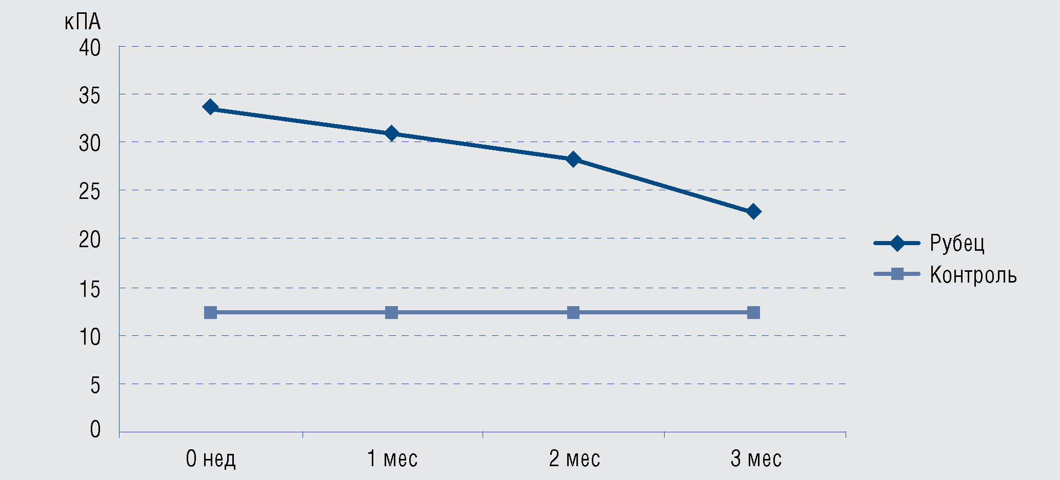 Рис. 5. Динамика жесткости рубцов и здоровой кожи (контроль) в процессе комплексного лечения