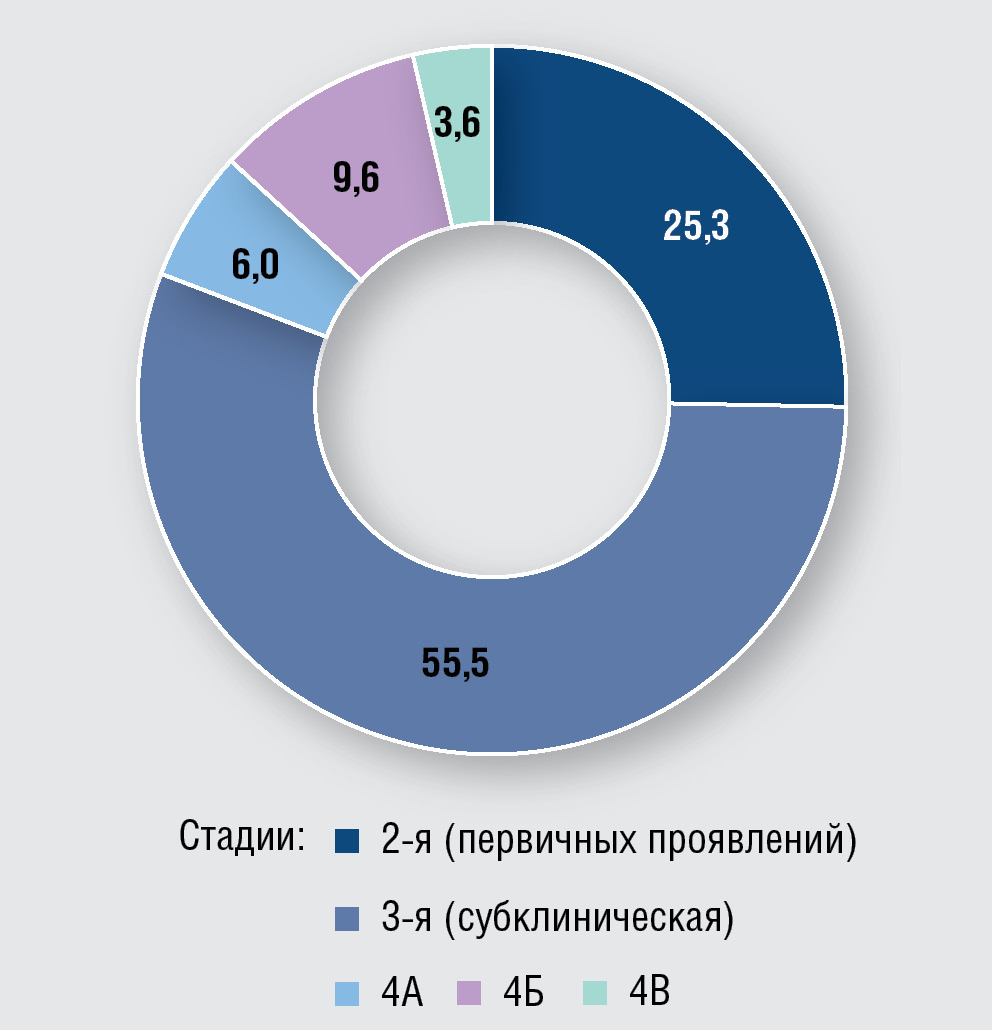 Рис. 1. Стадии ВИЧ-инфекции у участников исследования к моменту диагностики сифилиса, %