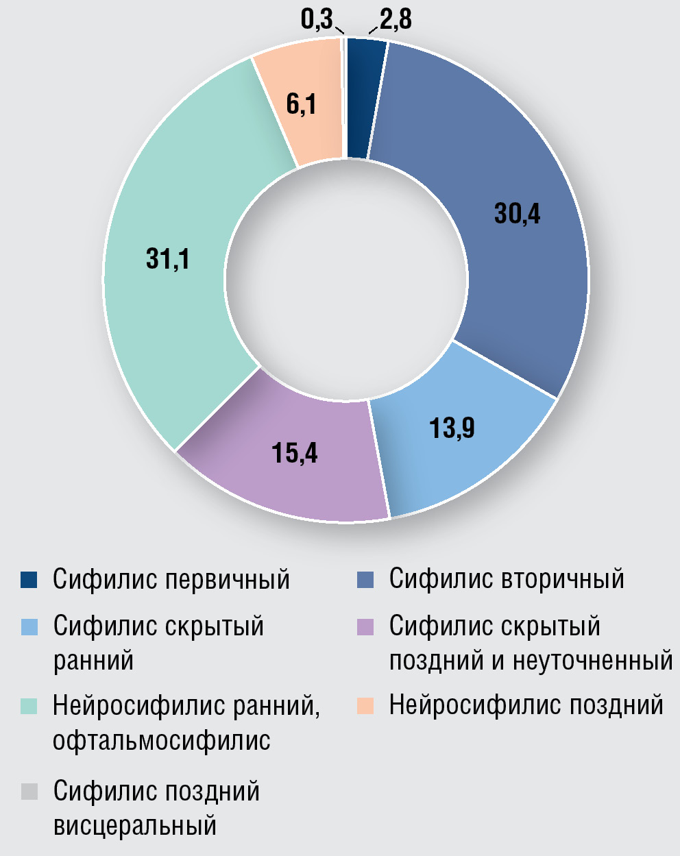 Основной исход исследования. Оценка структуры клинических форм сифилиса у ВИЧ-инфицированных пациентов.