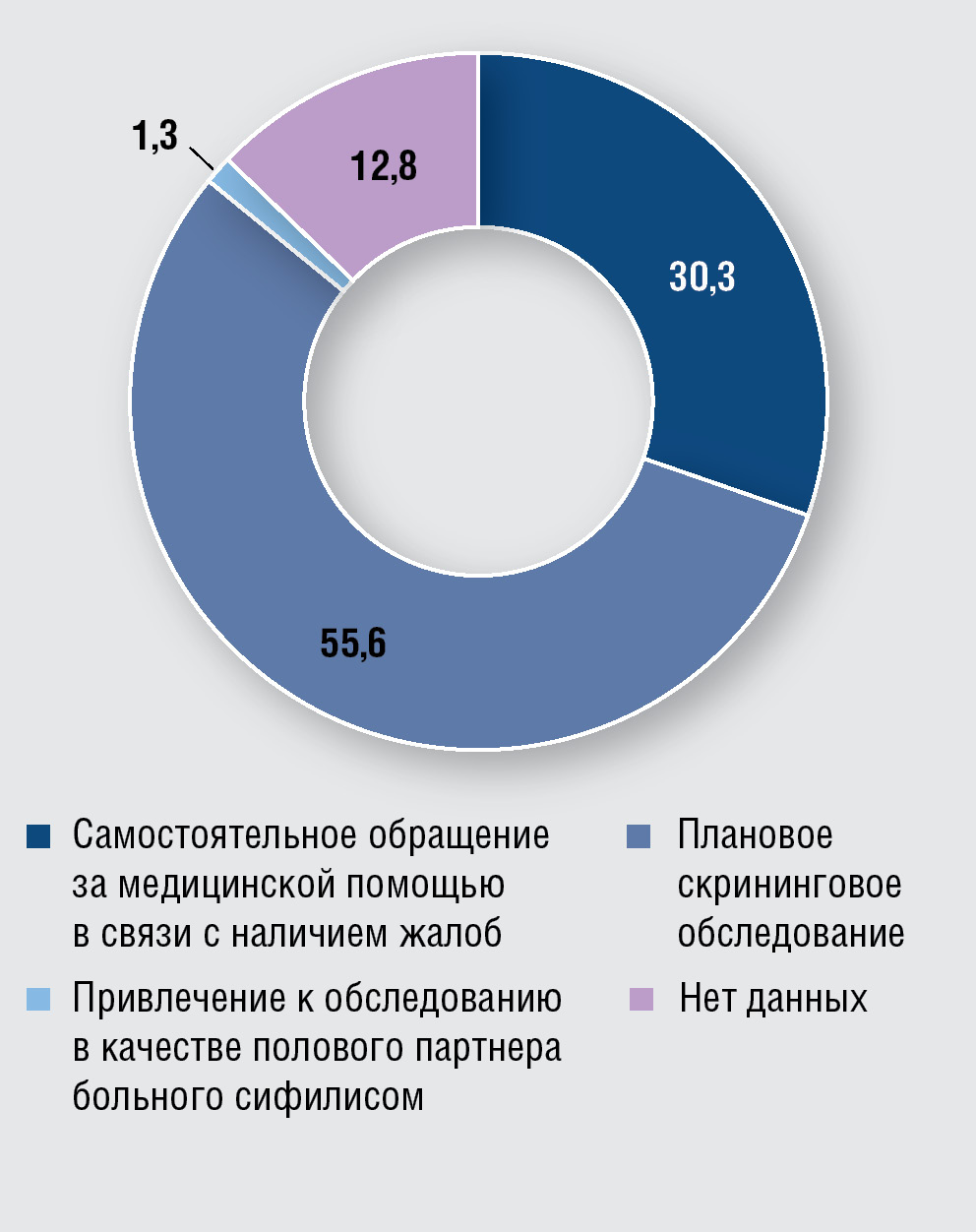 Fig. 3. Circumstances of syphilis detection in the study subjects, %