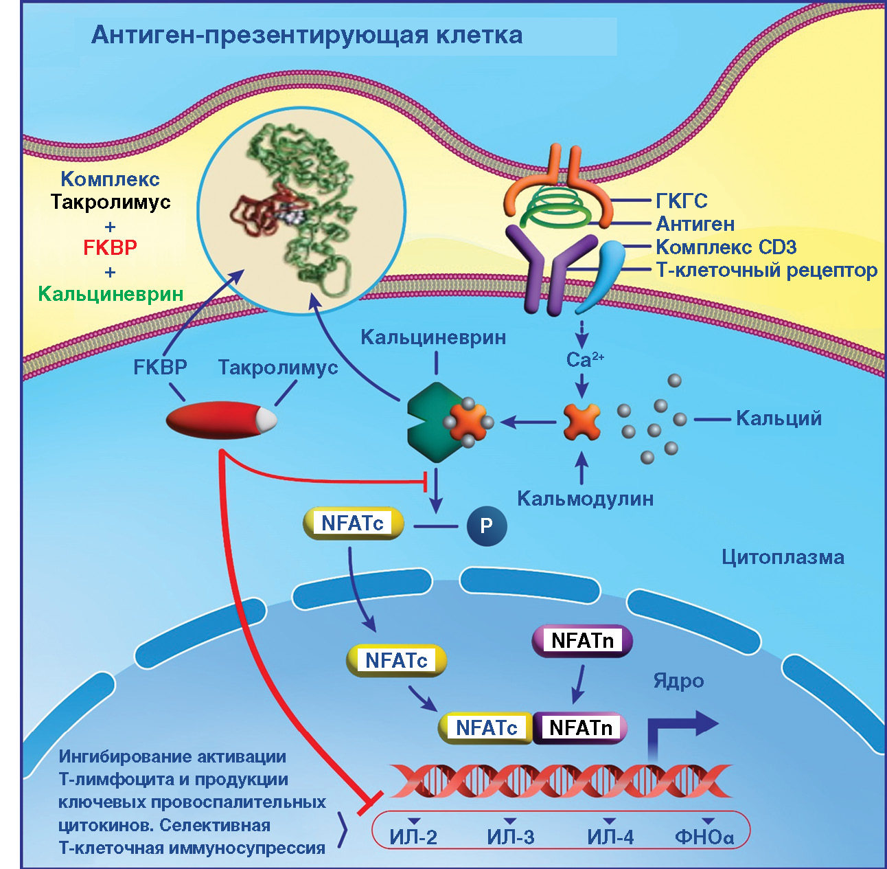 Рис. 1. Механизм действия такролимуса. Селективная Т-клеточная иммуносупрессия
